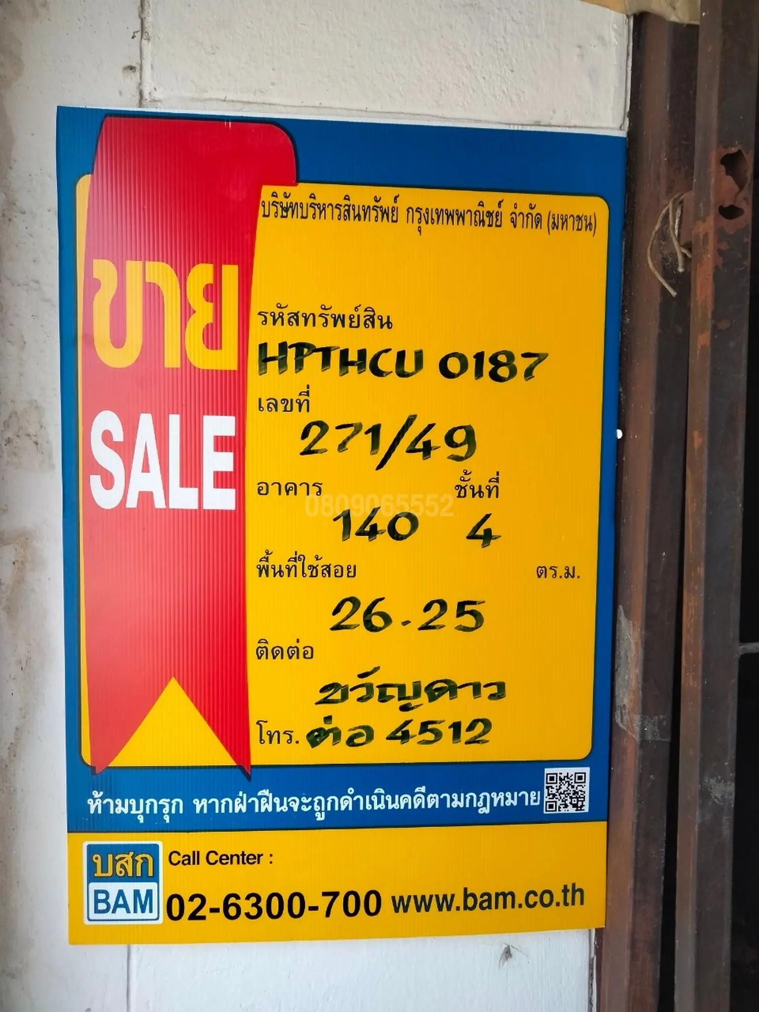 คอนโด | N/A | 4 | ไม่ระบุ | 26 ตร.ม. | 137,000 | 5,219 | 126 วัน | 0 | |